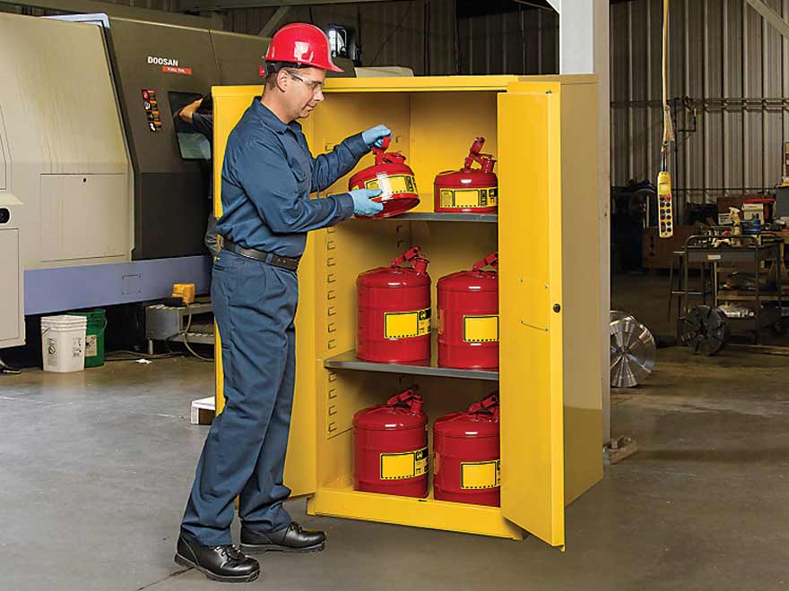Keep Flammable Liquids close to the work area in a safe and organized way while limiting employee exposure with Safety Storage Cabinets from Compliance Solutions. Cabinets are designed to meet safety requirements for the storage of Flammable Liquids. Choose from a large selection of models from 4 to 120 gallon storage capacity.