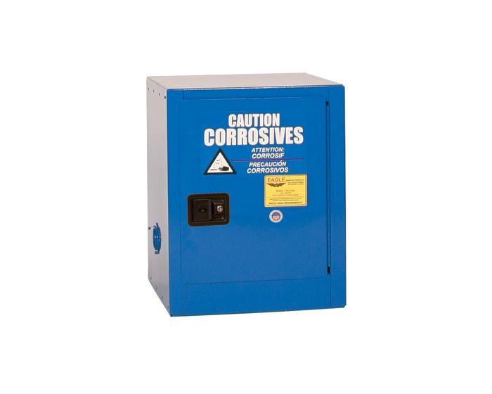 Countertop corrosive cabinets and compact safety cabinets provide an excellent space-saving chemical storage solution for safely handling corrosive materials. These compact corrosive storage units are constructed from durable, all-welded 18-gauge steel and are designed for long-lasting performance. Featuring dual capped vents with flame arrestors, a 2″ high leak-proof door sill, and full-height piano hinges, these corrosive storage cabinets are ideal for laboratory storage and environments requiring secure corrosive containment.